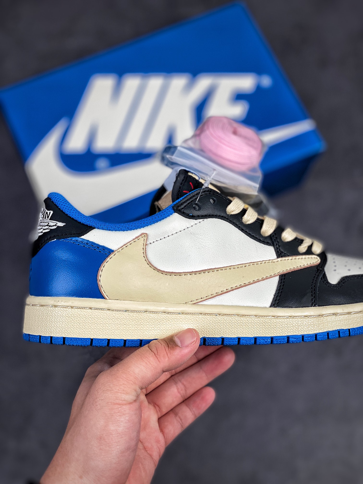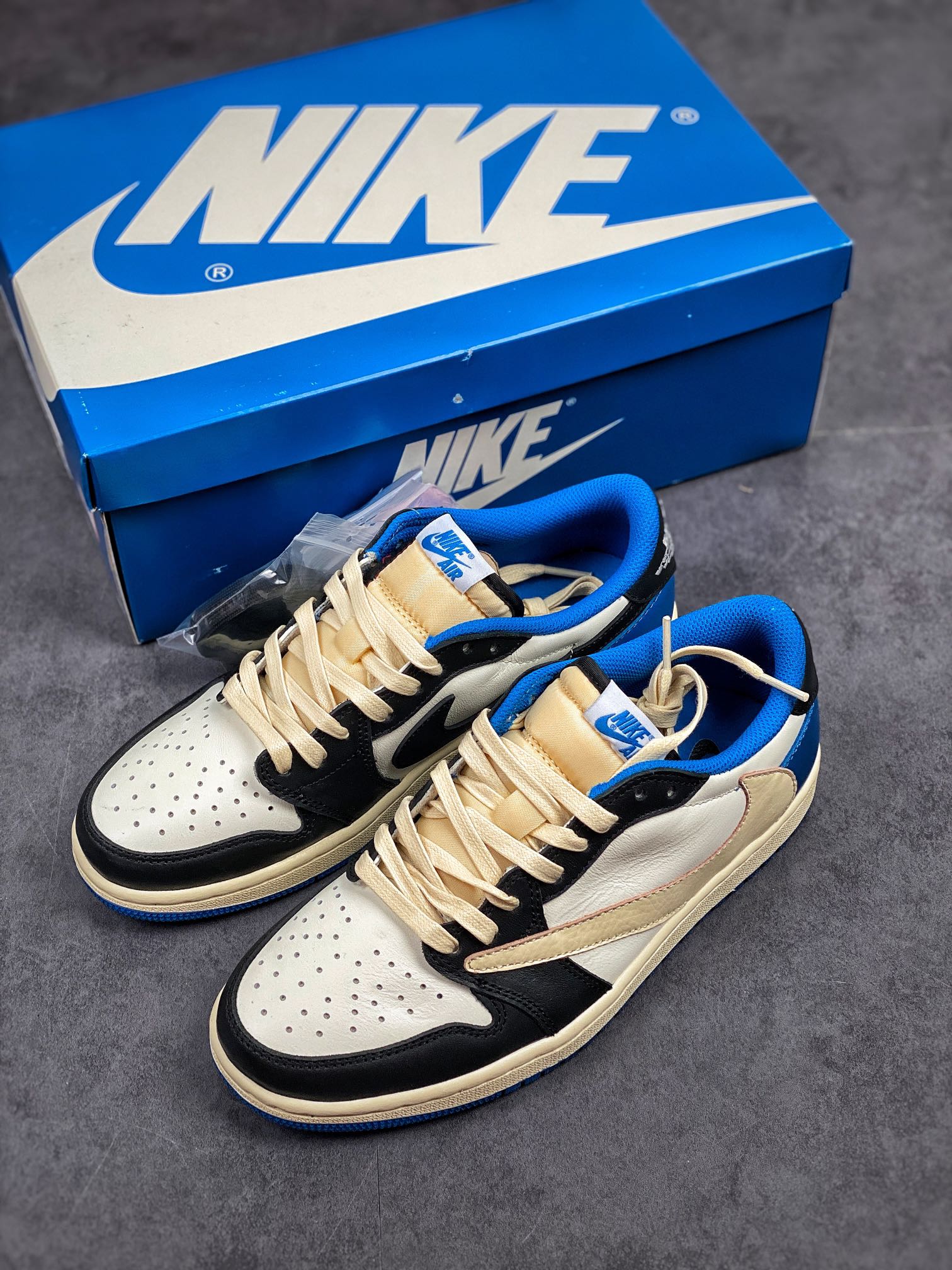 Heavyweight tripartite partnership, the successful annual shoe king! "Lightning Barb aj1" popular hip-hop singer Travis Scott and Hiroshi Fujiwara's managing brand fragment design x travis scott x nike air jordan 1 low og sp "military blue" aj1 Jordan's classic low-end culture versatile casual sports basketball shoes "ts Hiroshi Fujiwara's co branded lightning barb" dm7866-140 yards: 36-45