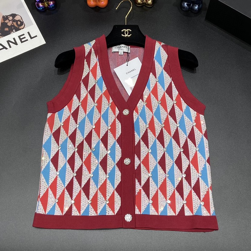 Chane * 23 New Vest 😍 Contrast Lingge Heavy Industry Hot Diamond Design Retro Advanced 🔥 Size SML available from stock