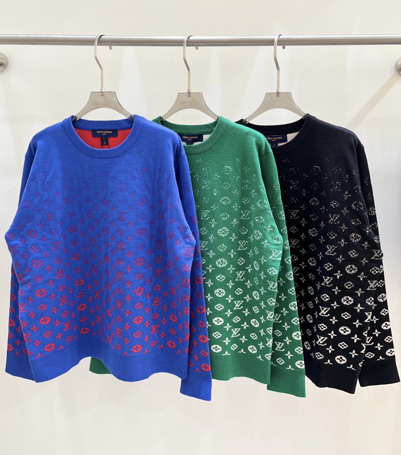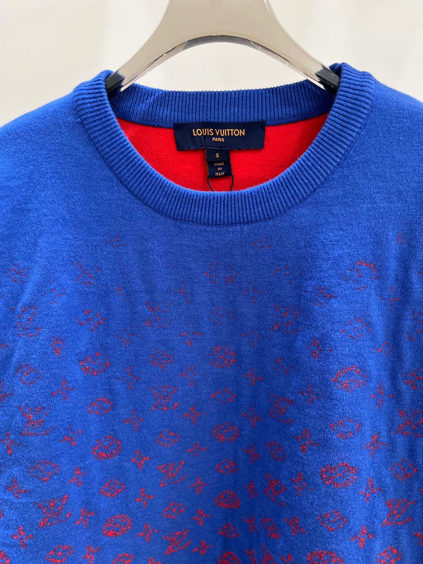 Exclusive Launch ❤️ LV Early Autumn New Gradient Logo Knitted Loose Round Neck Top with Classic Old Flower Pattern, Fashionable and Classic, a must-have item for trendsetters, 3-color SML, three sizes