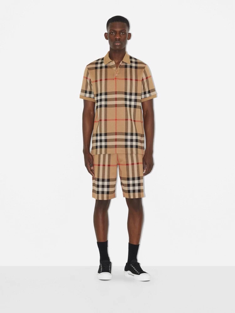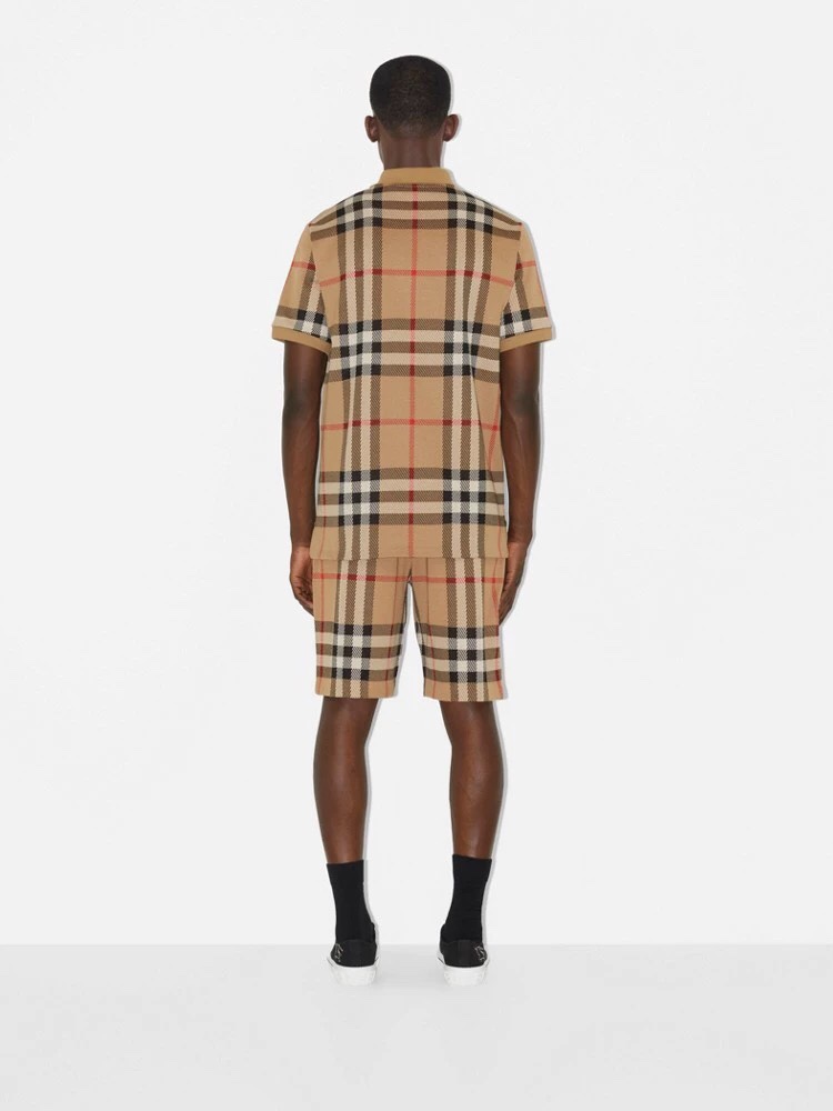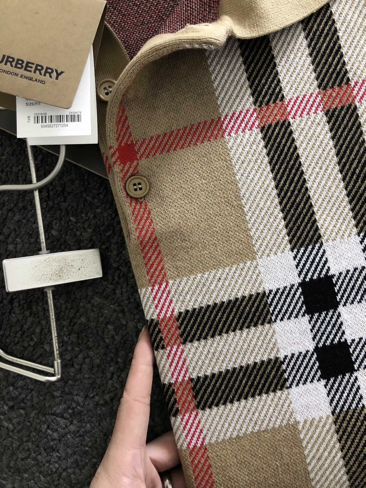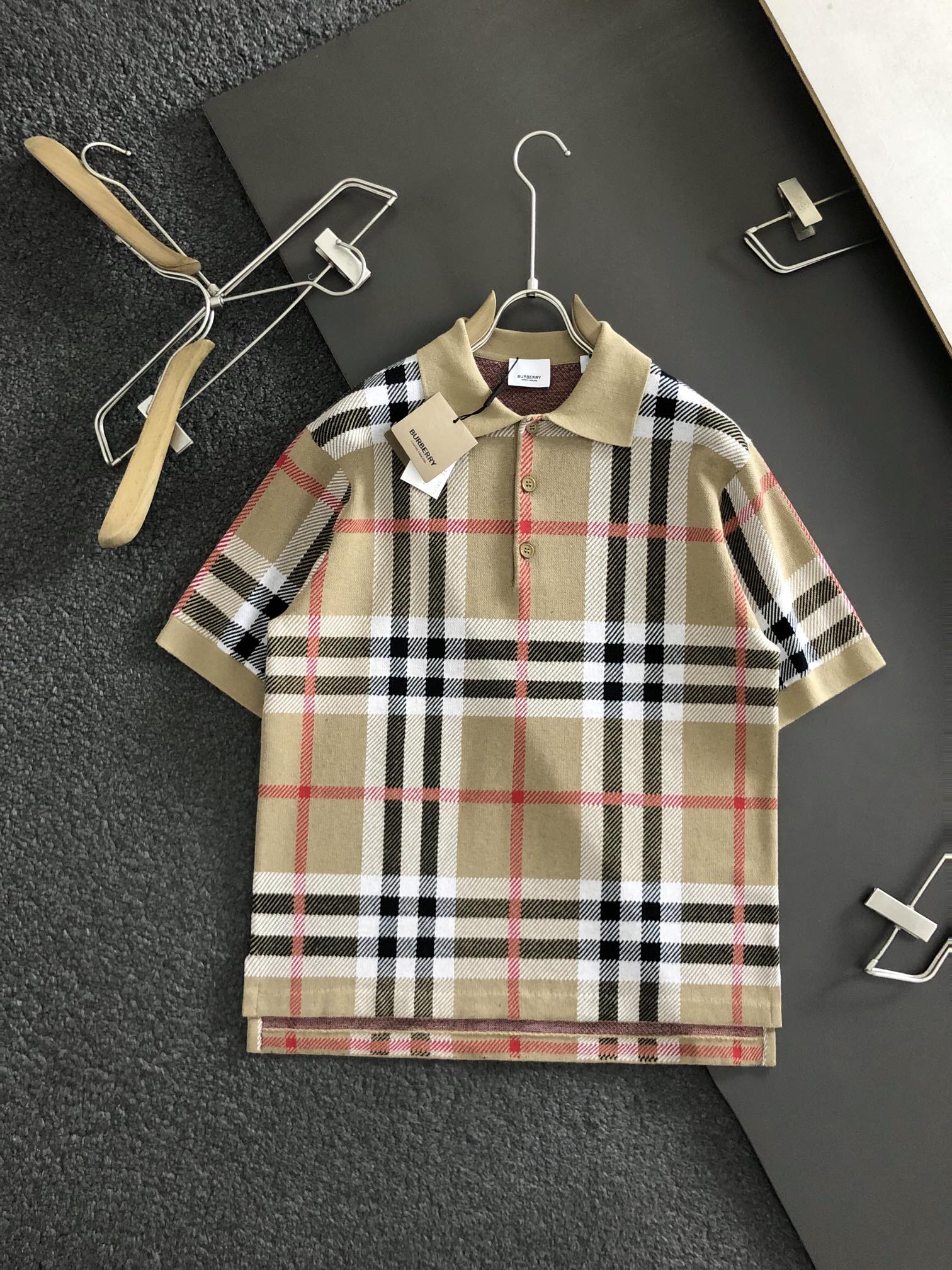 New Burberry Top grade retro plaid classic knitted fabric counter style jacquard line polo counter short sleeves