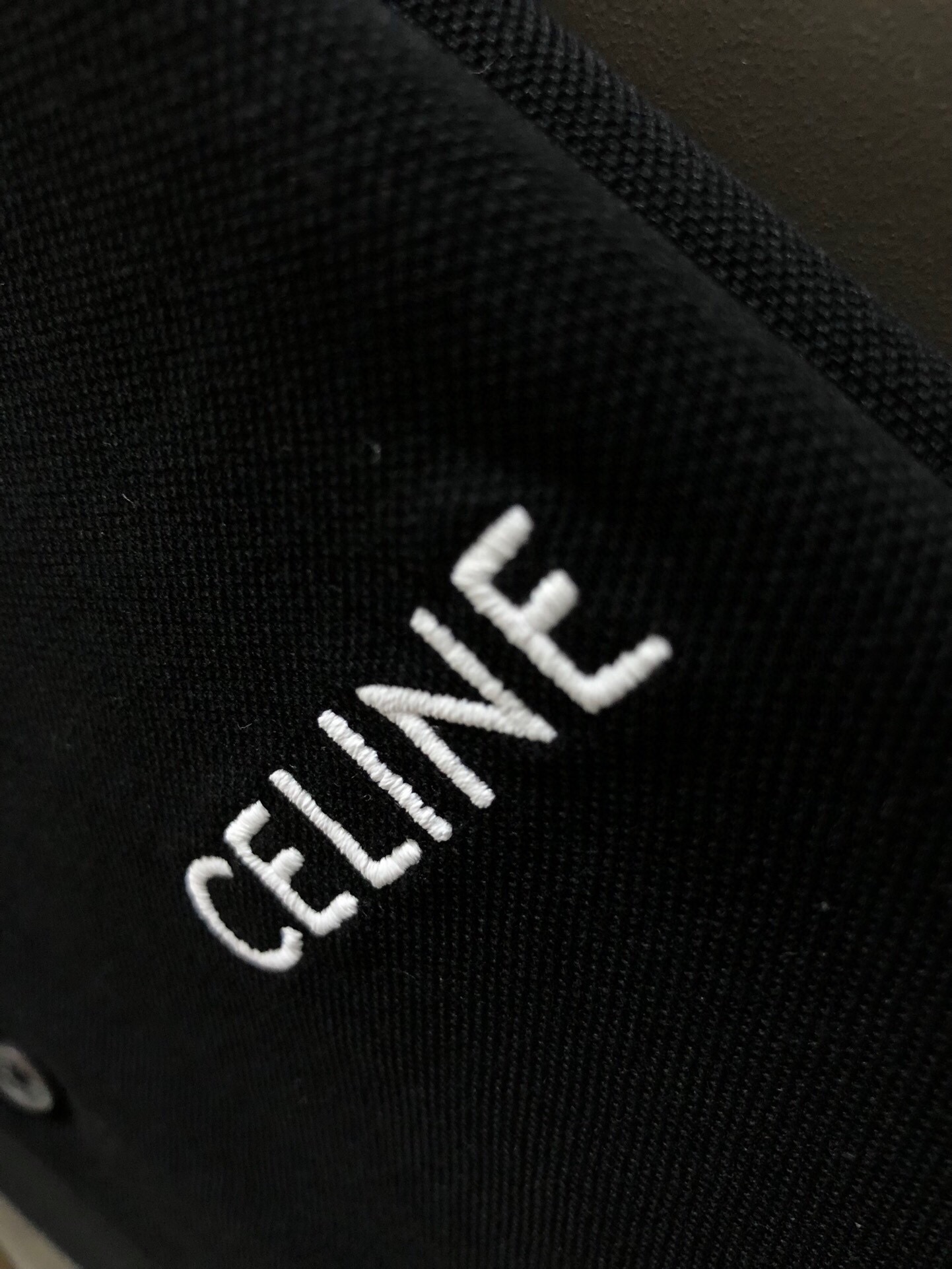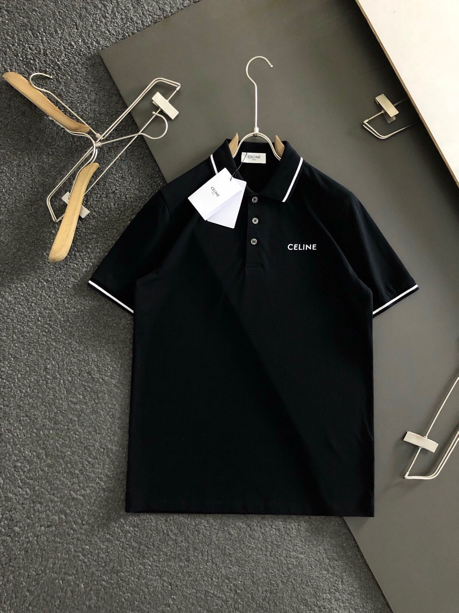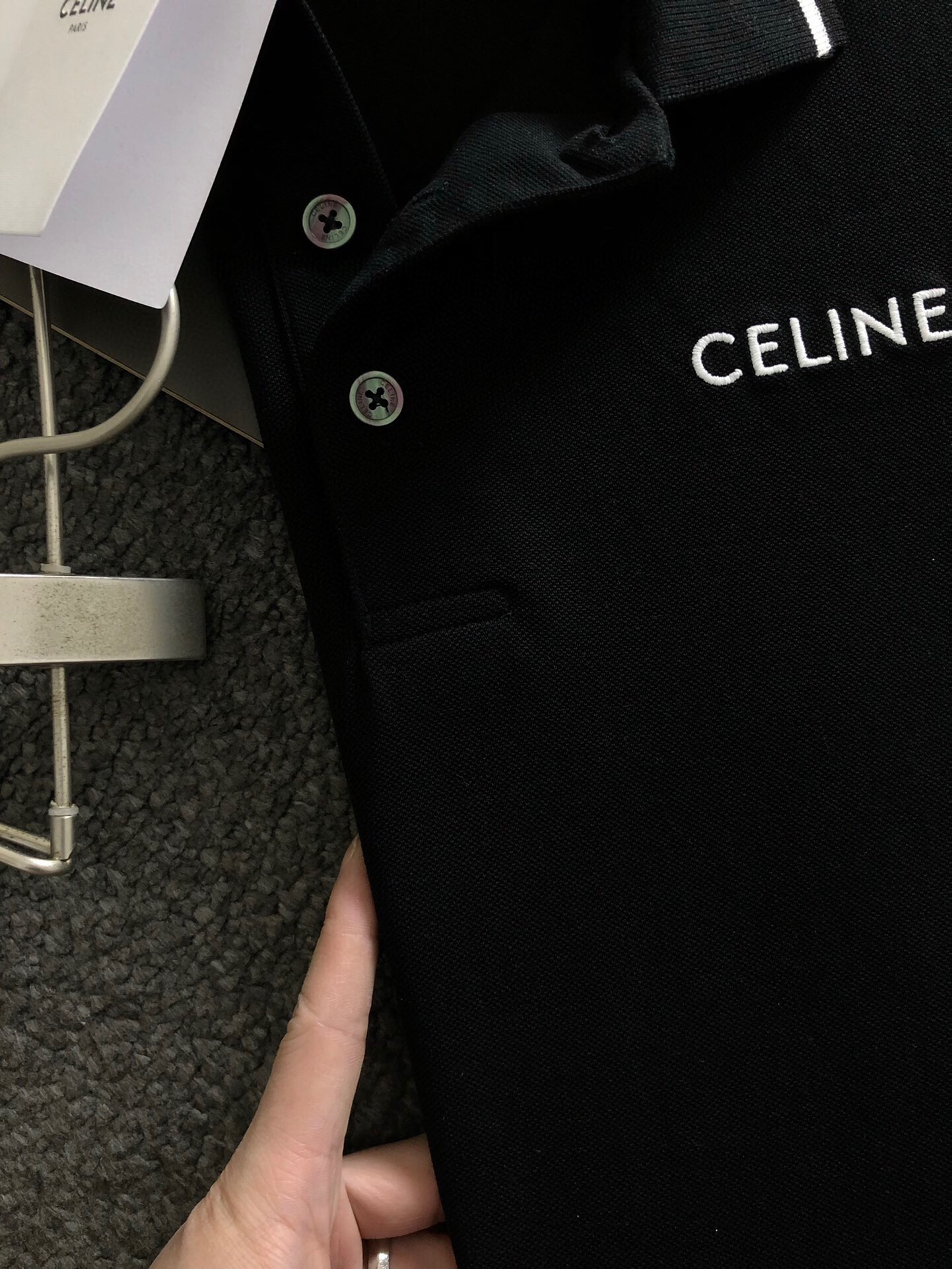 New Celine Top grade black three-dimensional thorn simple embroidered polo lapel short sleeve