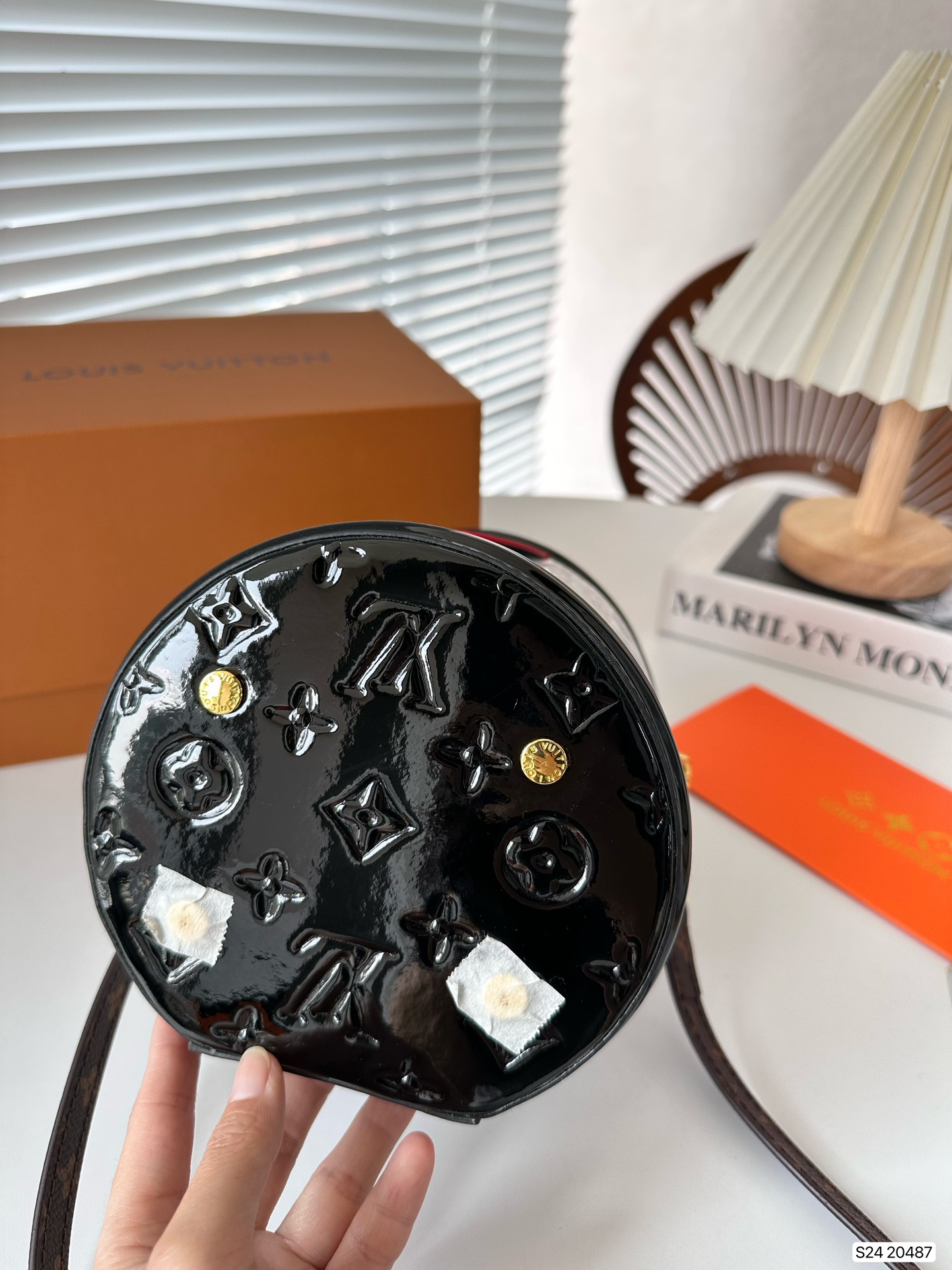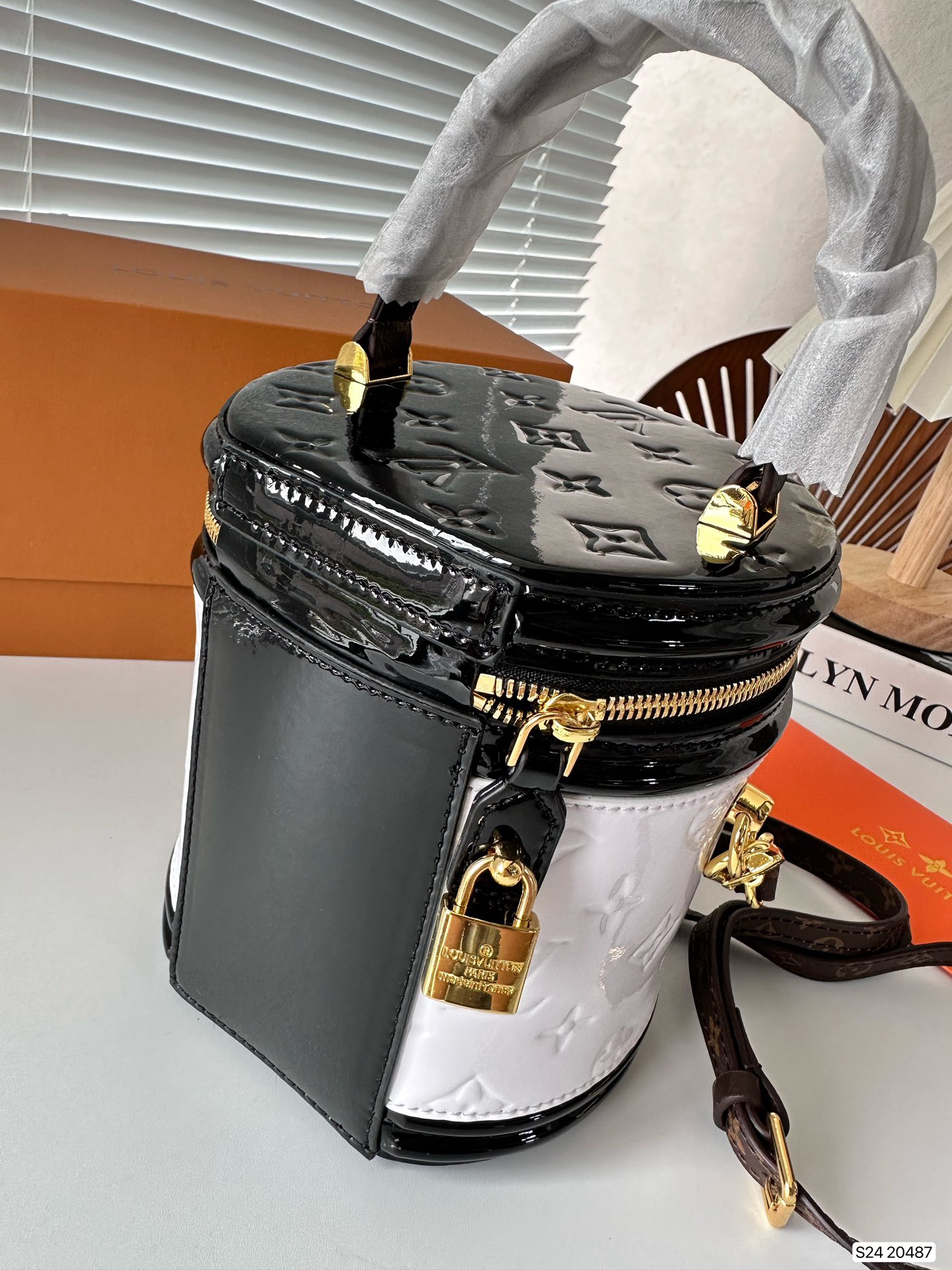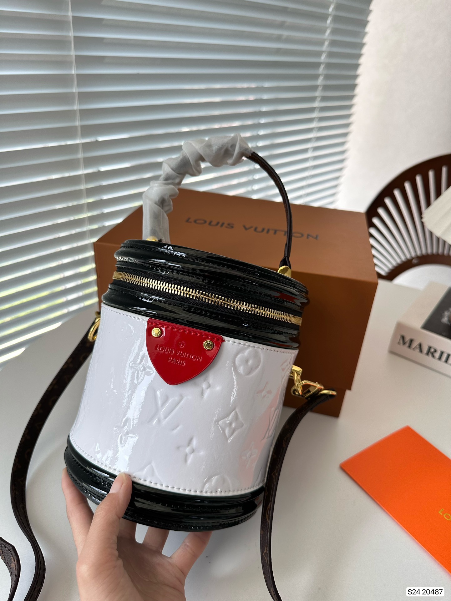 P270 folding box LV patent leather wealth container, with a unique barrel shaped design that hits the heart of a girl, the most important star, not too easy to wear clothes, can be perfectly matched! Size: 15 17 Art. No. 20487