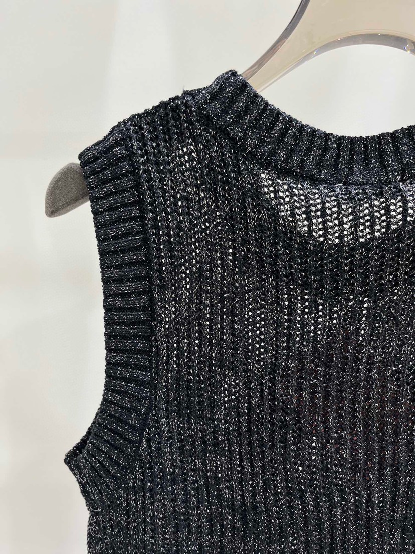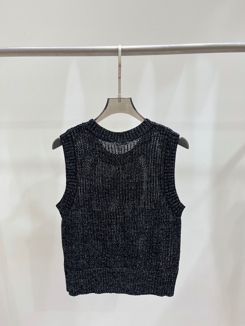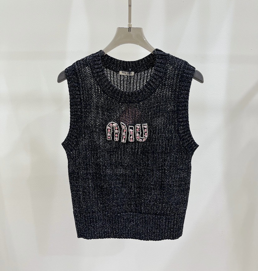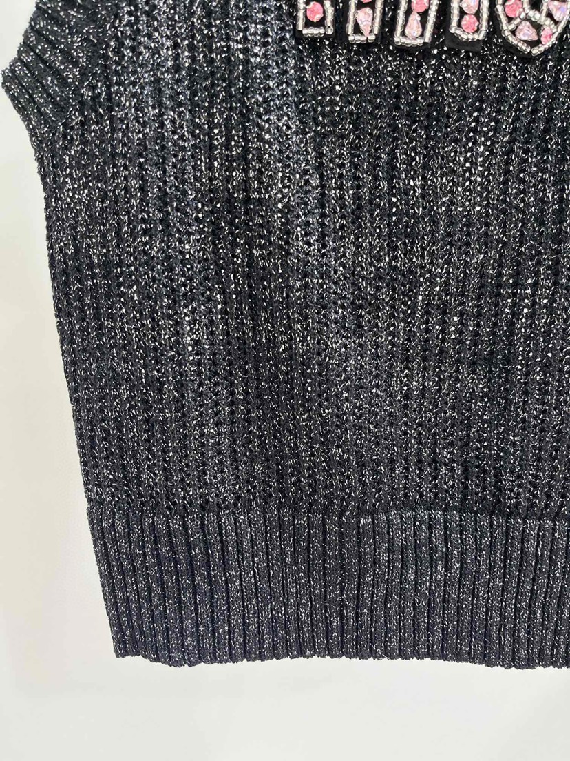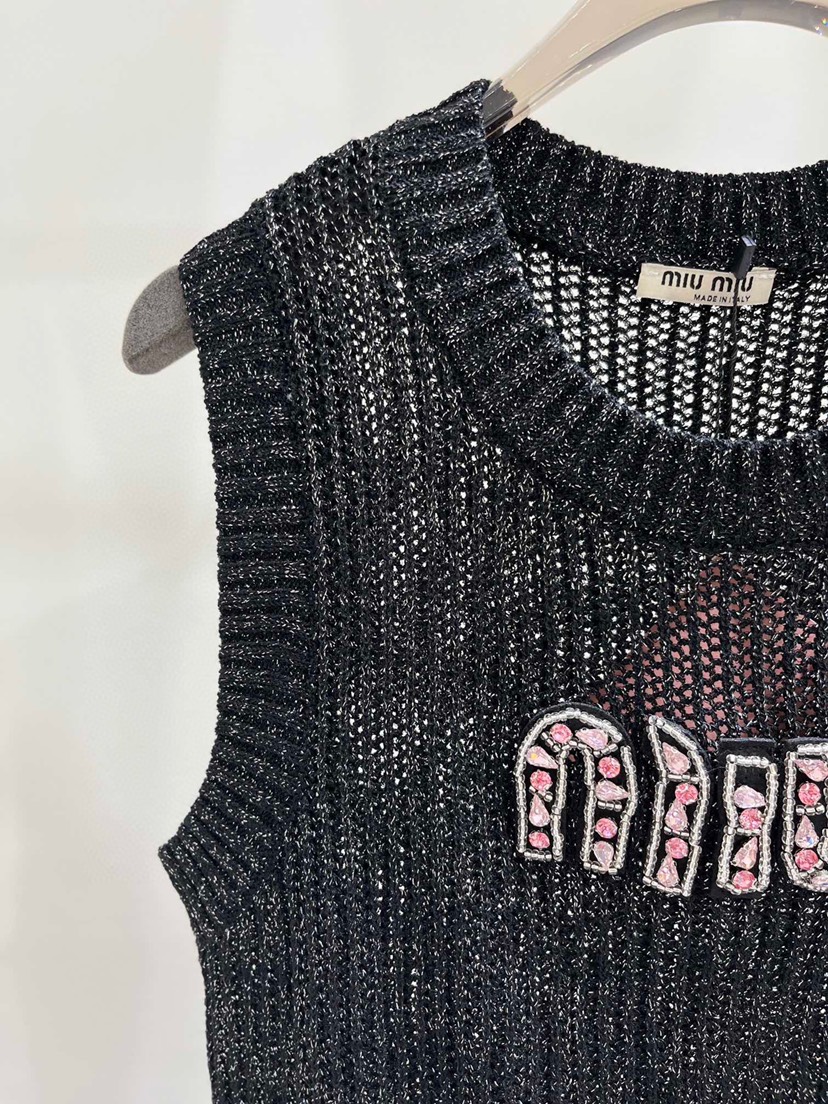 Exclusive debut Miu Miao 23 Summer New Pink Rhinestone Letter Hollow Knitted Tank Top in One Color Three Sizes