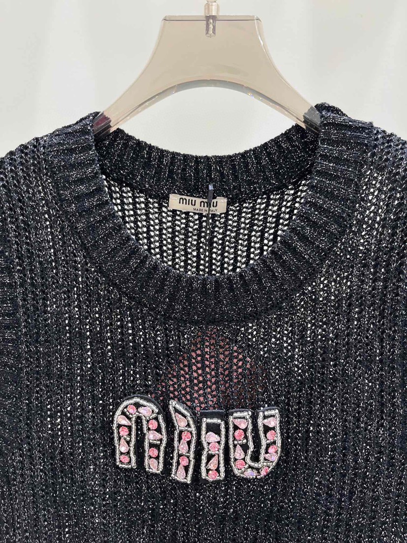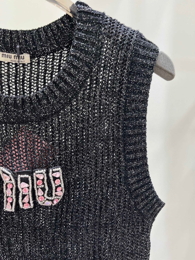 Home / miu miu / New Miu miu 23 Summer New Pink Rhinestone Letter Hollow Knit Tank Top