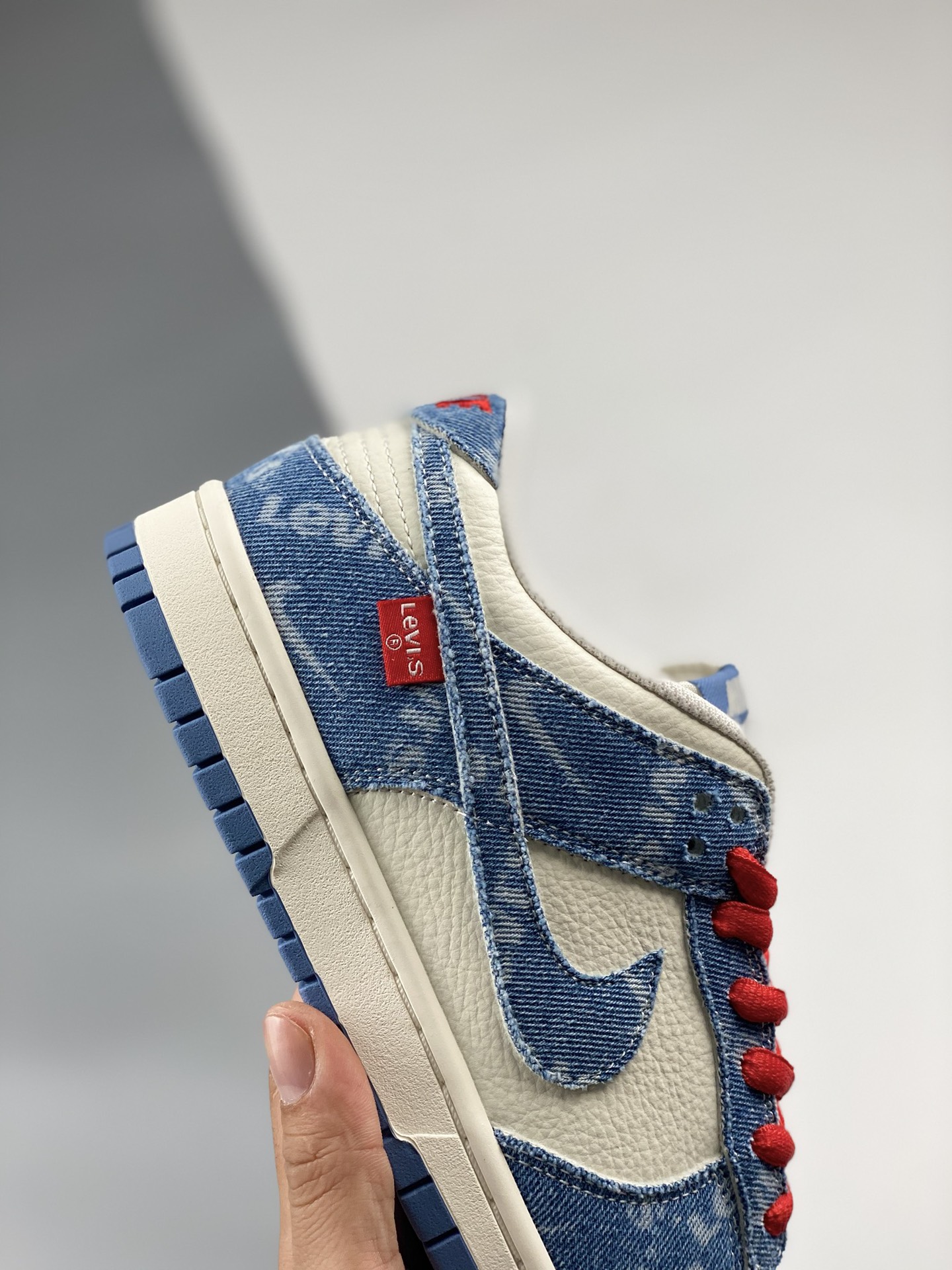 DetailNike dunk low levi's light blue Denim Levi's co named this shoe body is covered with a large area of canvas material, with white as the background color, matching the denim blue frame and swoosh design, the overall appearance is simple and versatile. In addition, the stitching on the shoe body is also outlined with white stitching to enhance the overall sense of layering. The previous word 'nike' has also been removed from the heel. The sole is designed with a white midsole and a blue rubber outsole, which complements the color scheme of the shoe. Article number: le0021-002
