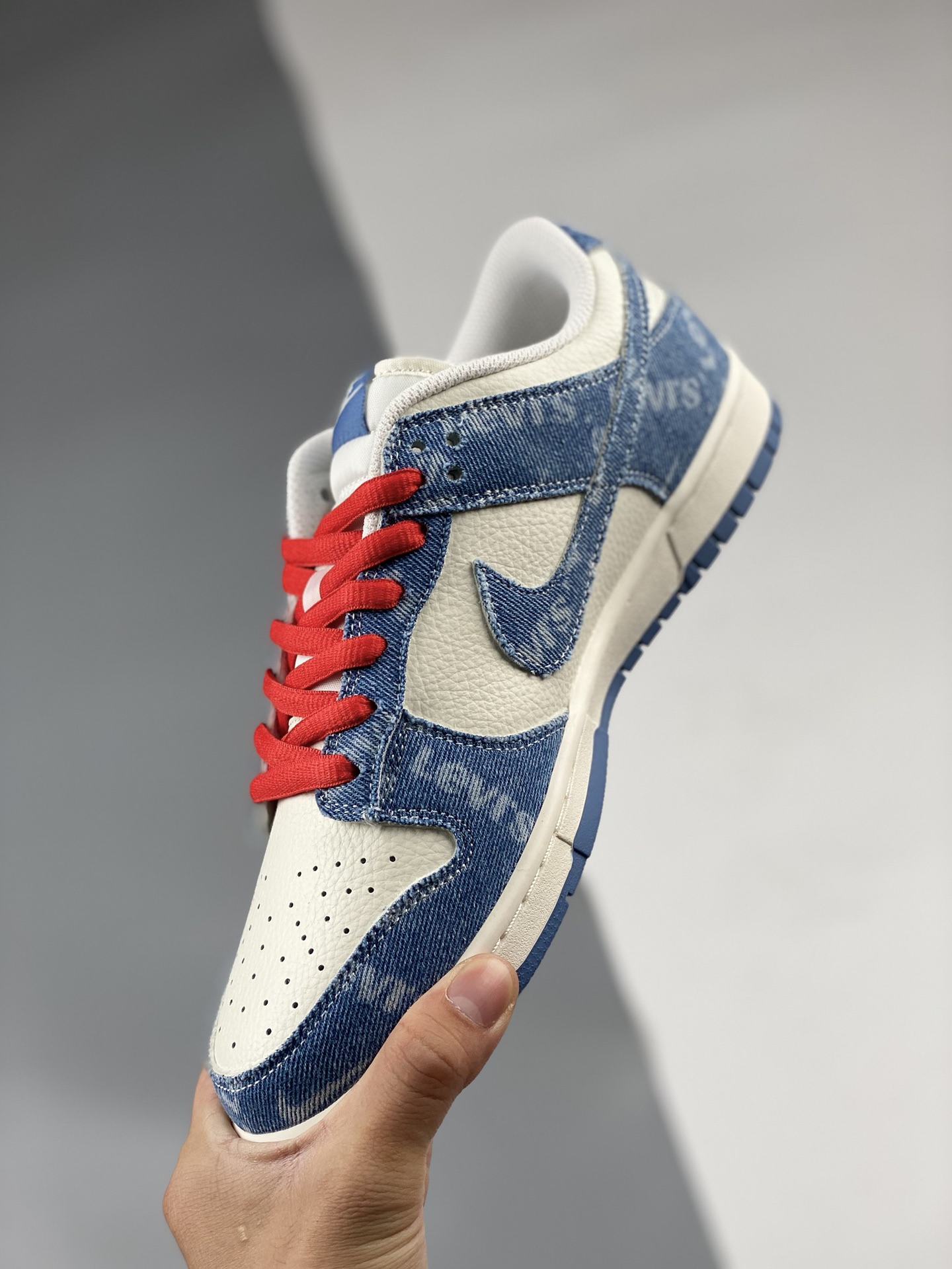 Nike dunk low levi's light blue Denim Levi's co named this shoe body is covered with a large area of canvas material, with white as the background color, matching the denim blue frame and swoosh design, the overall appearance is simple and versatile. In addition, the stitching on the shoe body is also outlined with white stitching to enhance the overall sense of layering. The previous word 'nike' has also been removed from the heel. The sole is designed with a white midsole and a blue rubber outsole, which complements the color scheme of the shoe. Article number: le0021-002