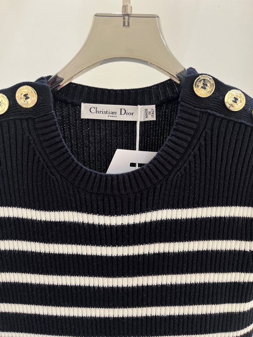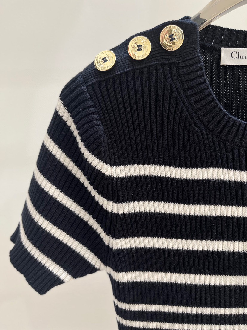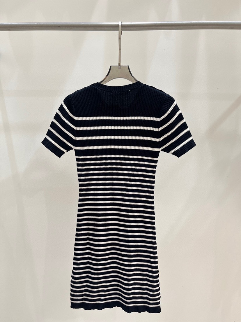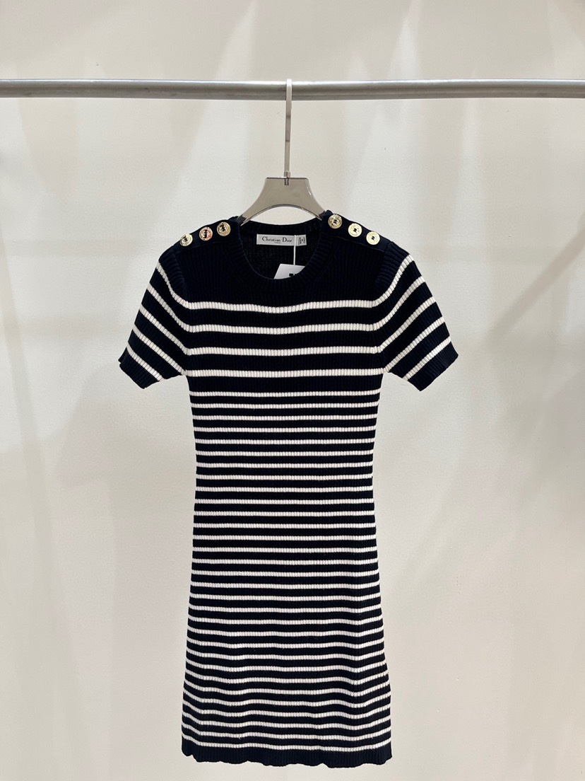 • New Dior 23 Summer New Metal Shoulder Buckle Classic Stripe Knit Dress