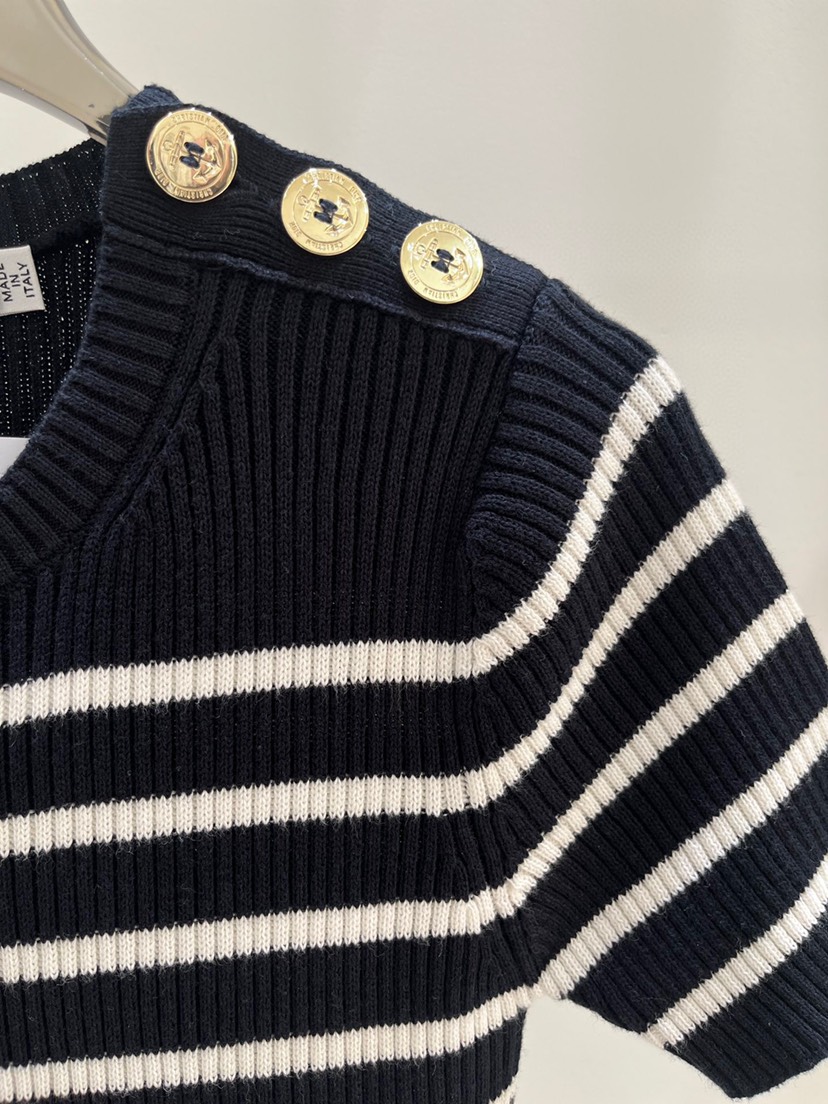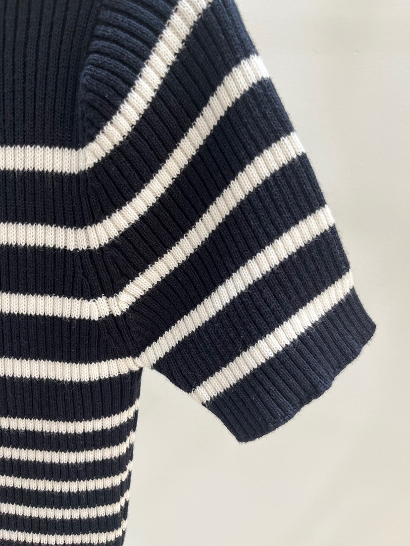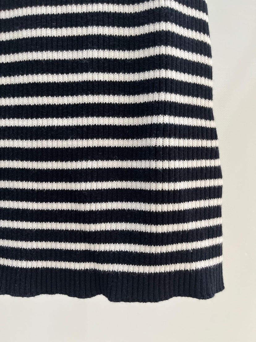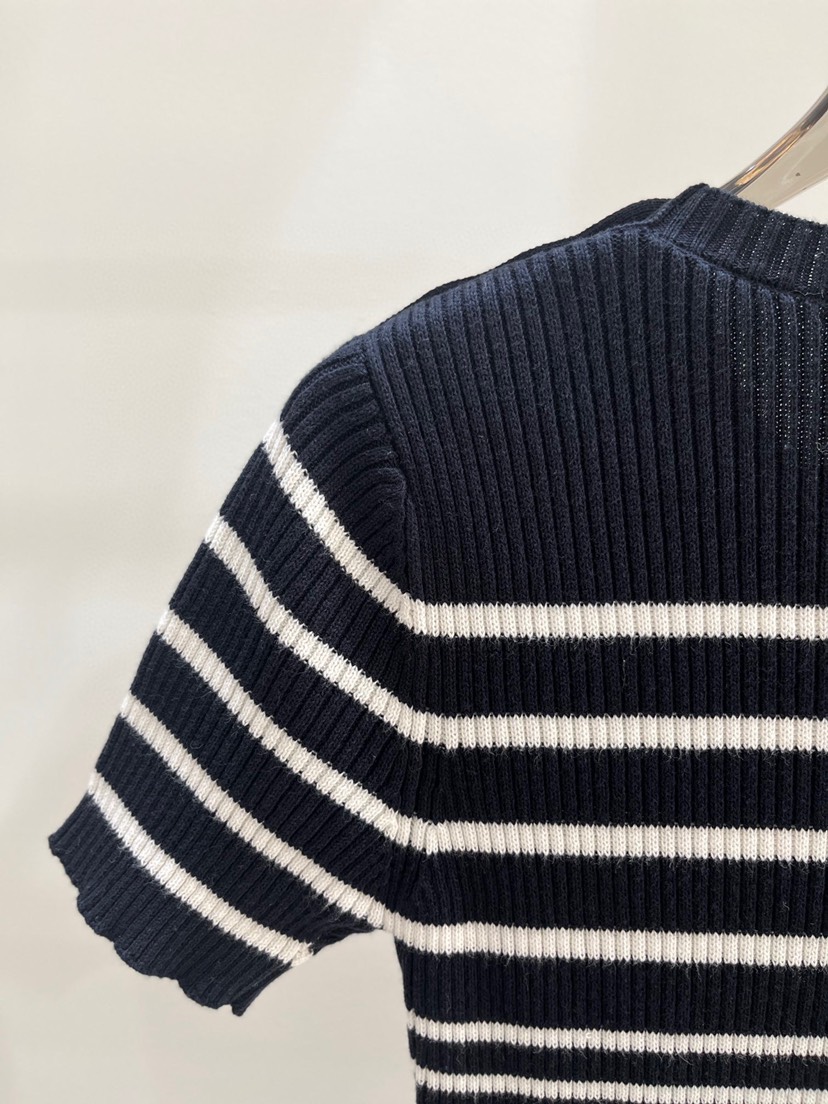 • New Dior 23 Summer New Metal Shoulder Buckle Classic Stripe Knit Dress